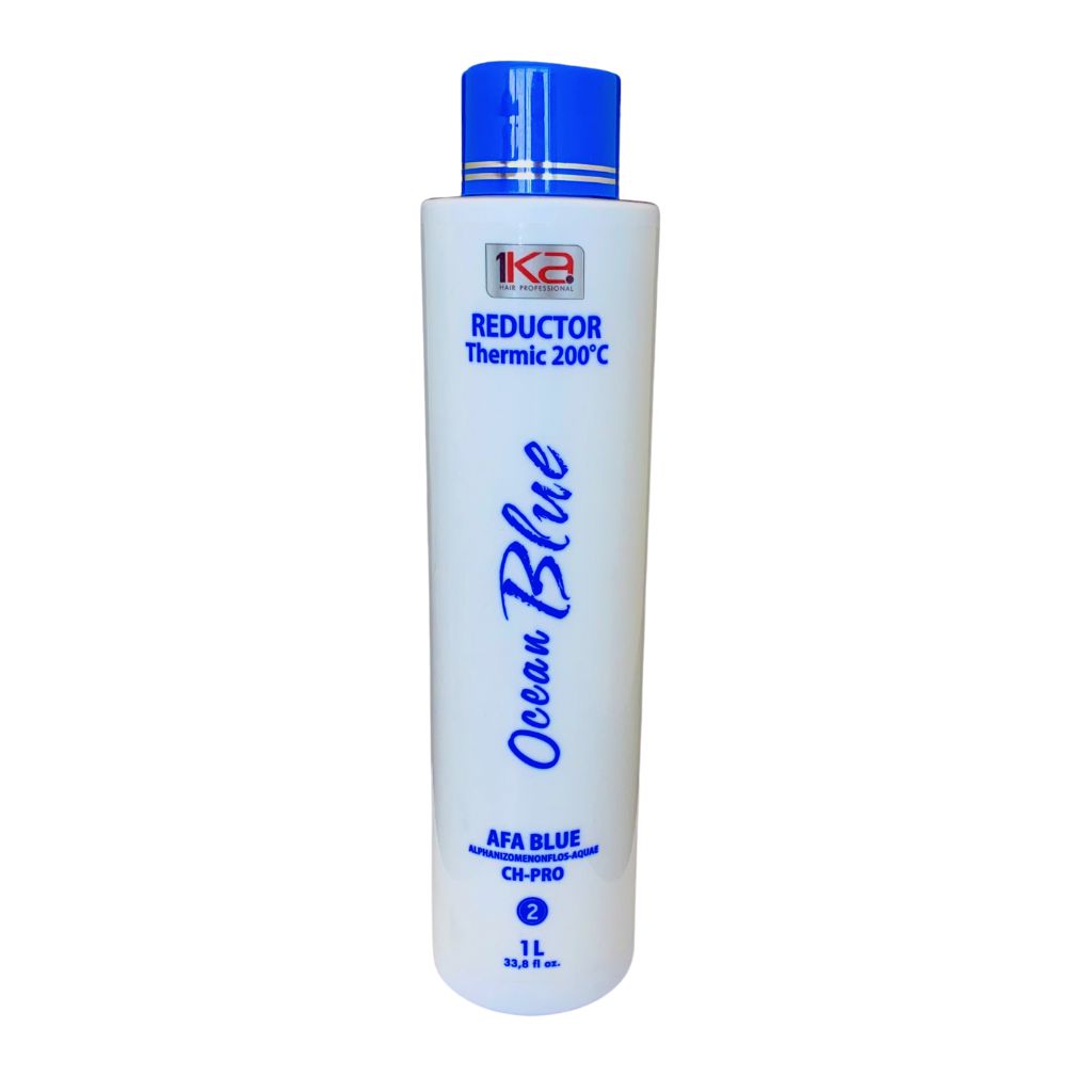 Lave os cabelos com Shampoo anti Resíduo, seque em 100%. Aplique a 1Ka Ocean Blue Reductor por toda a extensão dos fios, sem encostar no couro cabeludo e deixe agir de 20 a 30 minutos em cabelos finos a médios e, 30 a 40 minutos em cabelos mais resistentes. Retire o excesso do produto em torno de 30% a 50%, em cabelos platinados ou loiros claros retire 80%. Após, inicie uma boa escovação e pranche em mechas finas de 10 a 12 vezes, cada mecha. Obs. Se necessário, enxágue