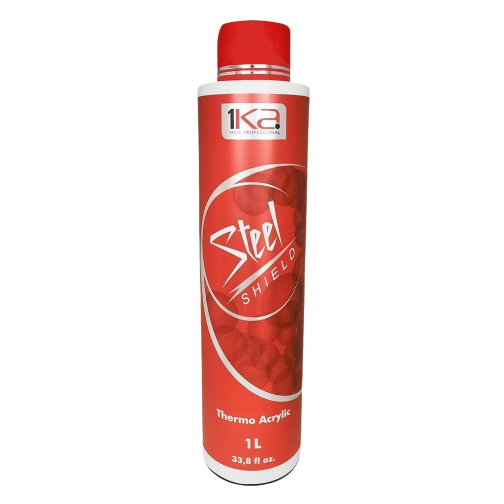 2: Colocar em uma cumbuca aproximadamente 40 a 50 ml de 1Ka Steel, se necessário colocar mais produto para terminar o processo, utilizando luvas e pincel, aplicar mecha a mecha iniciando pela nuca, da seguinte forma: raiz, comprimento e ponta. Não encostar no couro cabeludo. A Pausa poderá ser de 40 a 60 minutos, até a desestruturação do fio, é determinante pra o resultado final do tratamento. Confirme se o fio está desestruturado, através do nó